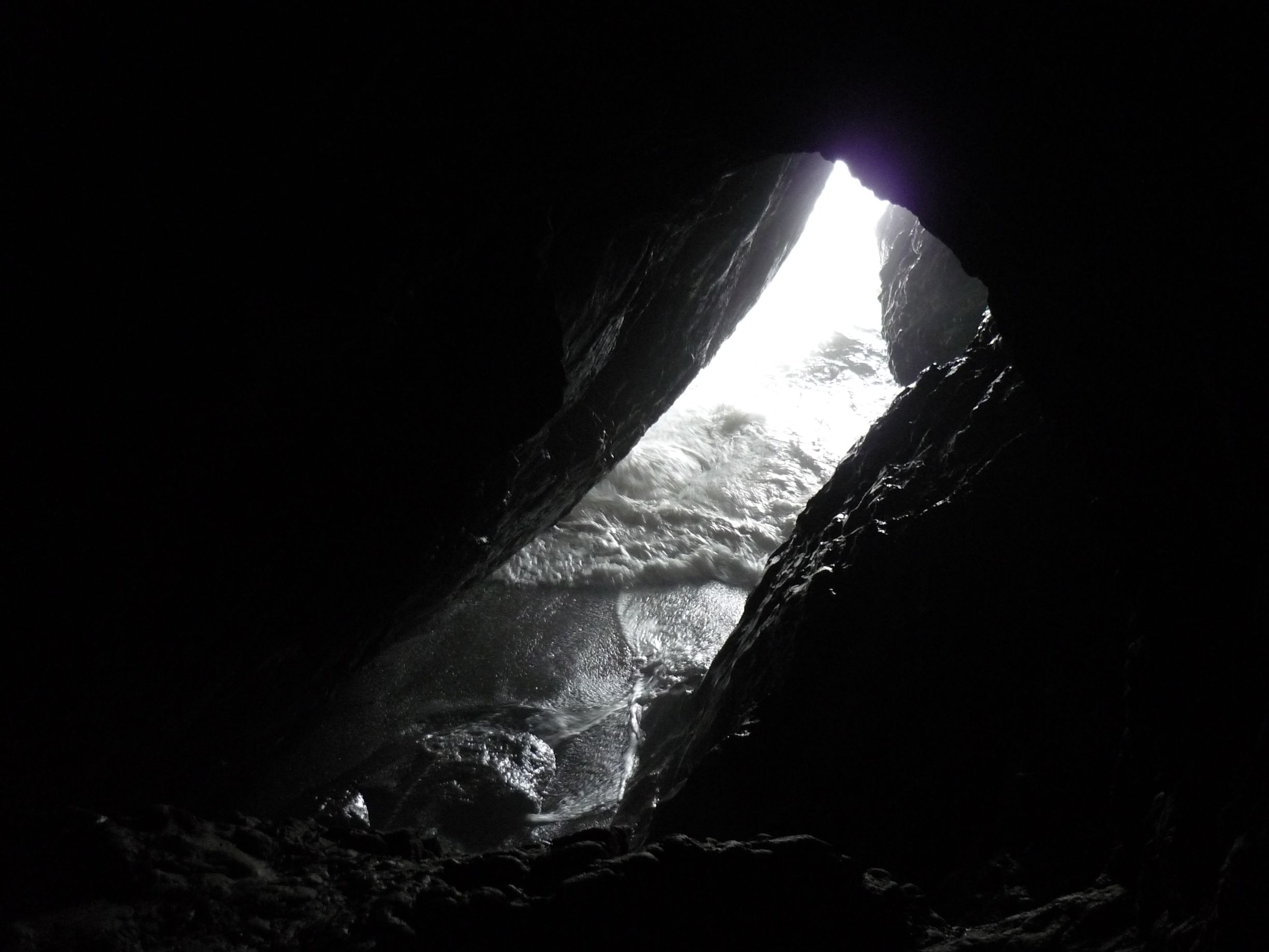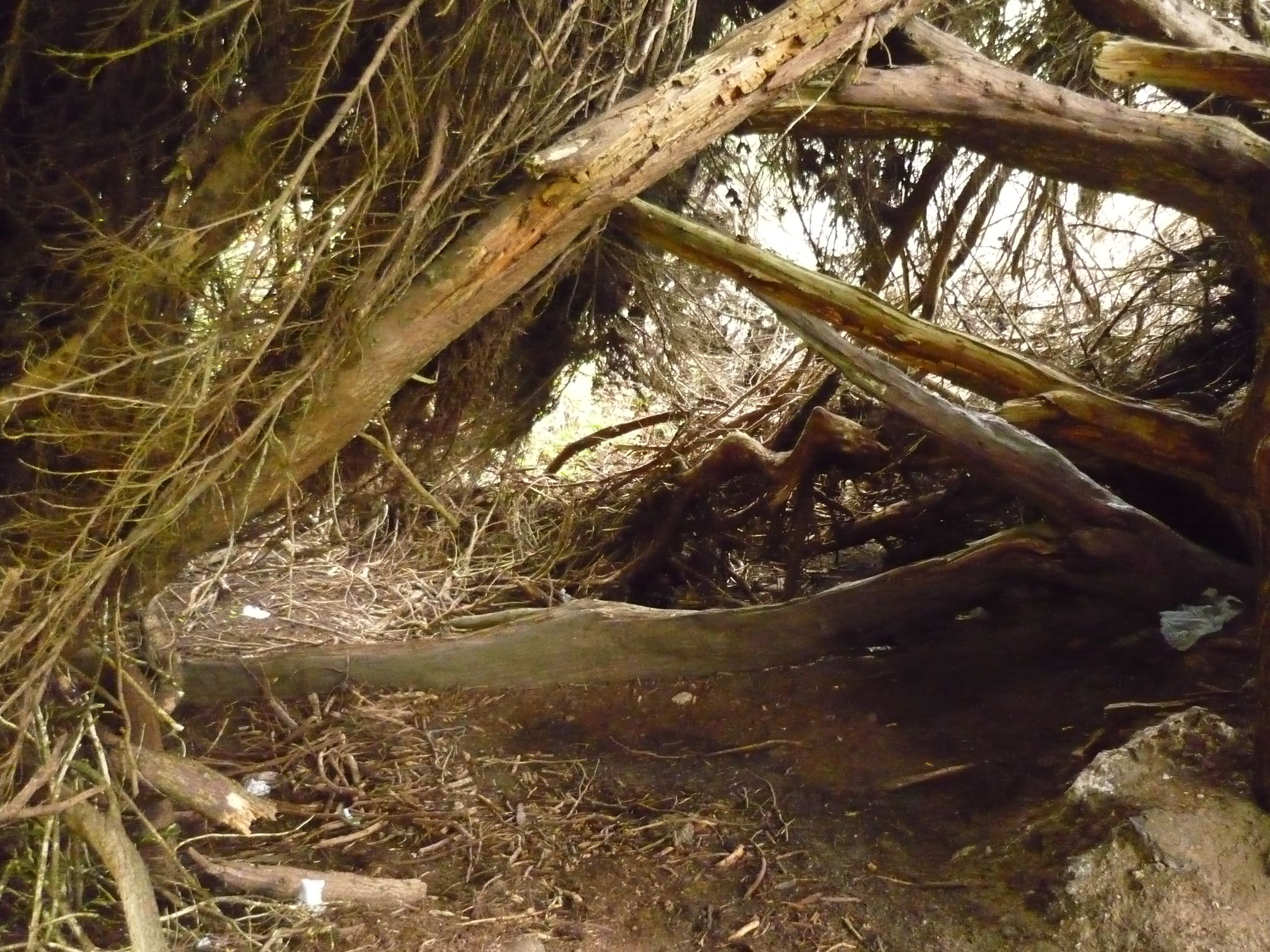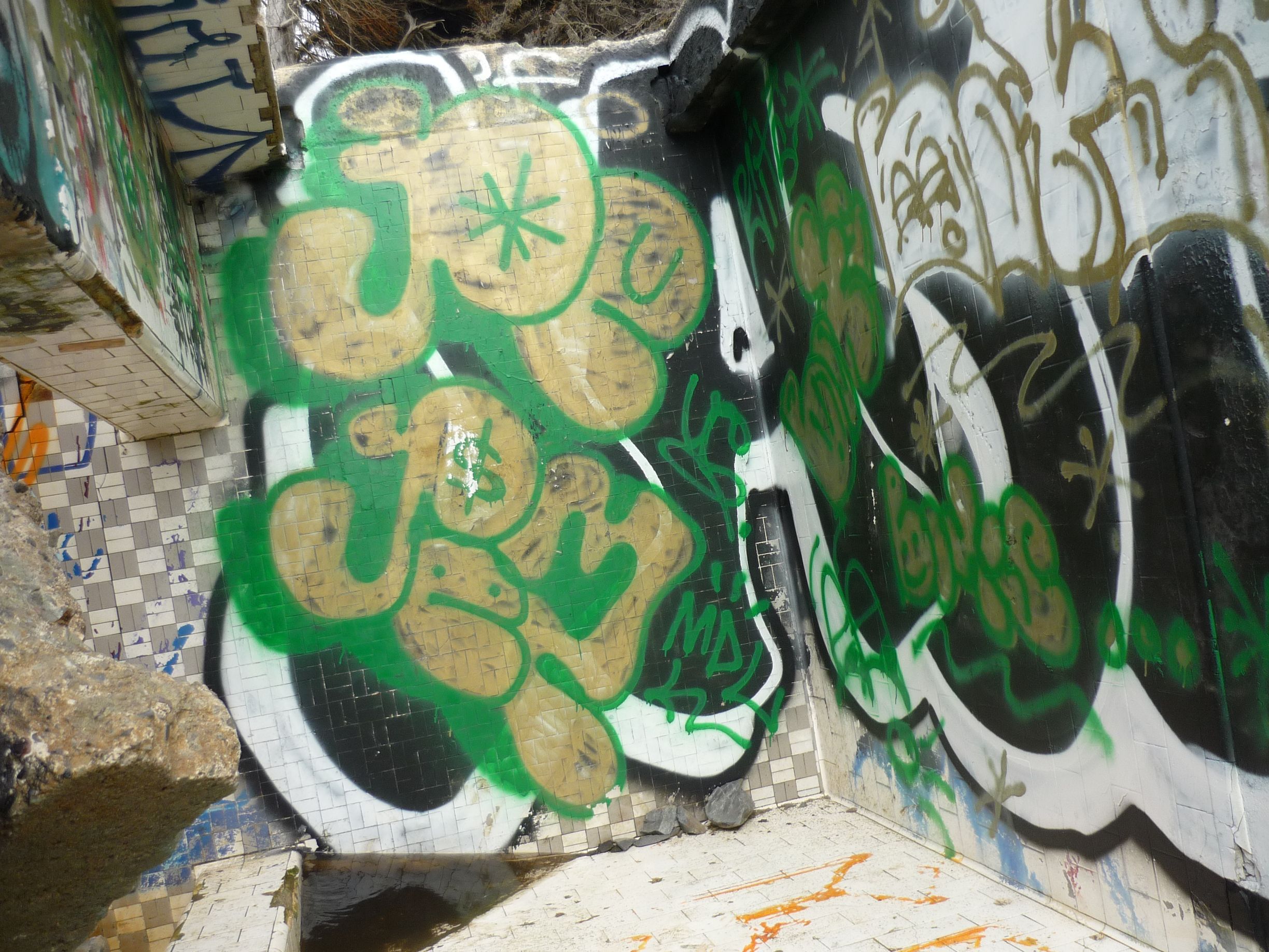 Je continue ensuite la balade le long de la côte, avec des paysages vraiment magnifiques. À un moment, je vois un chemin s’enfoncer dans le côté « sauvage », descendant vers la mer. Le genre de chemin tracé par les pas des hommes qui l’ont emprunté. Je décide alors de le suivre et passe à travers bosquets de bambous, arbustes et arbres, ce qui devait probablement être l’aspect de tout cet endroit il y a 300 ans. Après quelques minutes de marche, je croise une personne qui m’indique que la destination finale de ce chemin est une plage de rochers. En effet, quelques minutes plus tard, j’arrive sur une « plage » désolée. Les vagues qui explosent contre quelques gros rochers et l’absence de toute autre personne donnent vraiment à cet endroit une ambiance particulière ! Un peu plus loin, à droite, je repère une sorte de maison cassée en plusieurs morceaux, tous plus tagués les uns que les autres… Probablement les suites d’un glissement de terrain… Je décide ensuite de prendre une nouvelle route pour récupérer le chemin principal. Après m’être un peu perdu, je reviens enfin à la civilisation !