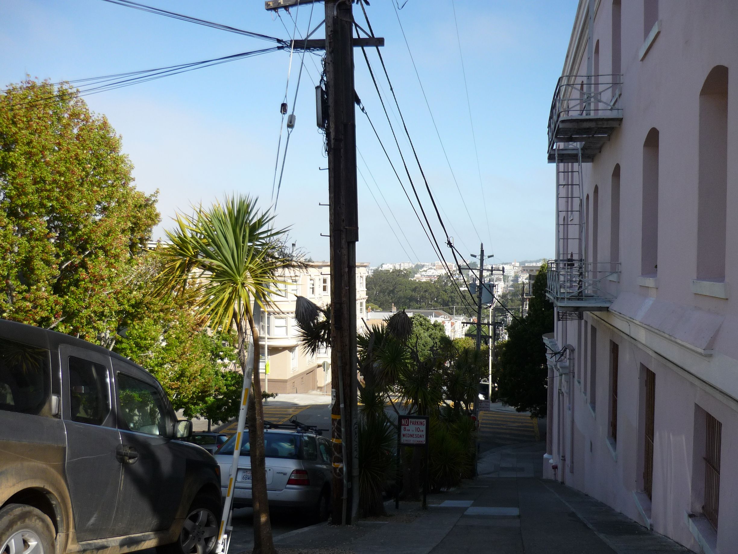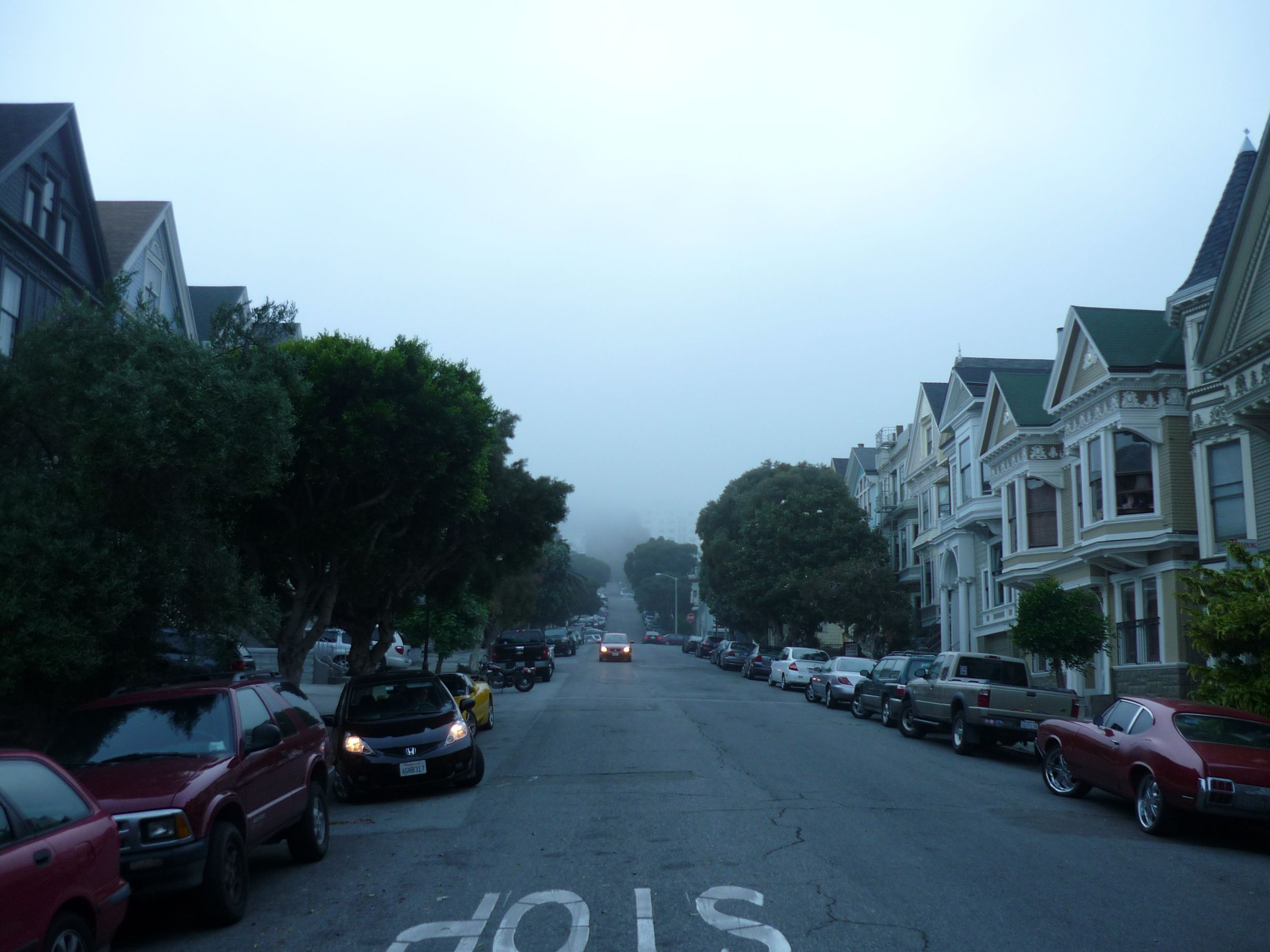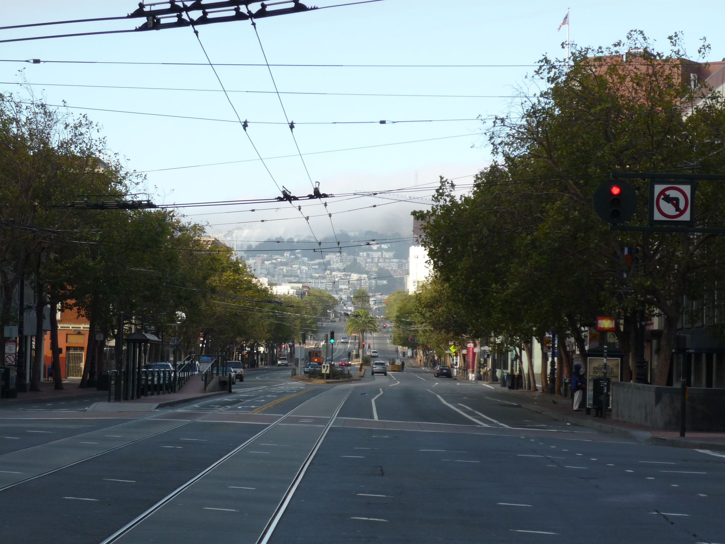 Le temps dehors a changé : il y a du vent et le fameux fog commence à s’installer. Au niveau du Buena Vista Park, je suis obligé de remettre mon pull. Arrivé à Duboce Park, il fait carrément froid ! Le vent pousse le brouillard qui, en plus de cacher le soleil, ajoute de l’humidité. On peut voir distinctement le brouillard descendre la côte au niveau de ce parc, c’est vraiment impressionnant. J’avais bien lu que le temps pouvait changer très vite à San Francisco, mais je n’aurais jamais pensé que c’était à ce point ! La vidéo que j’ai pris dans le parc ne rend pas bien l’effet que cela fait en vrai…