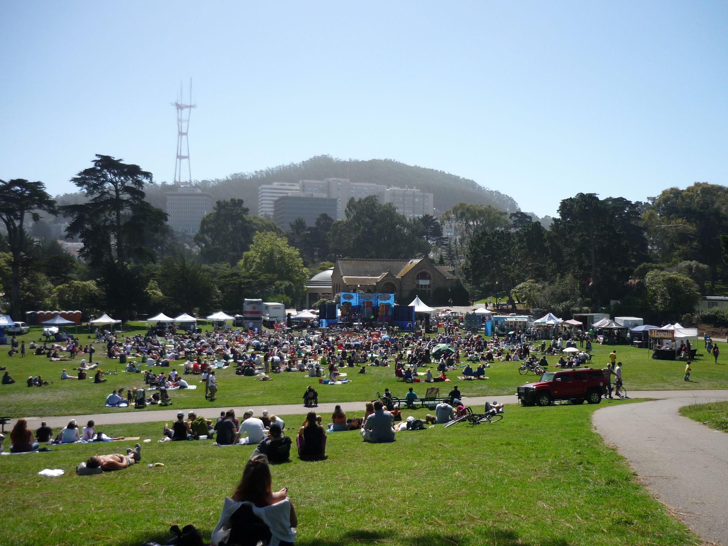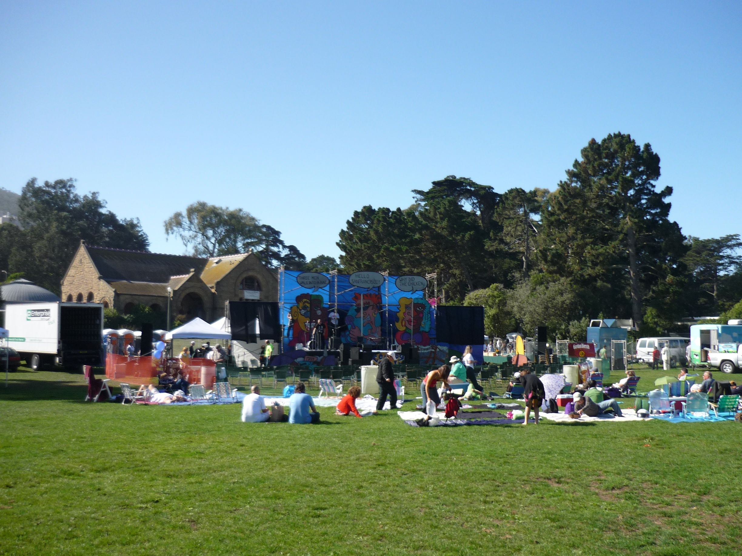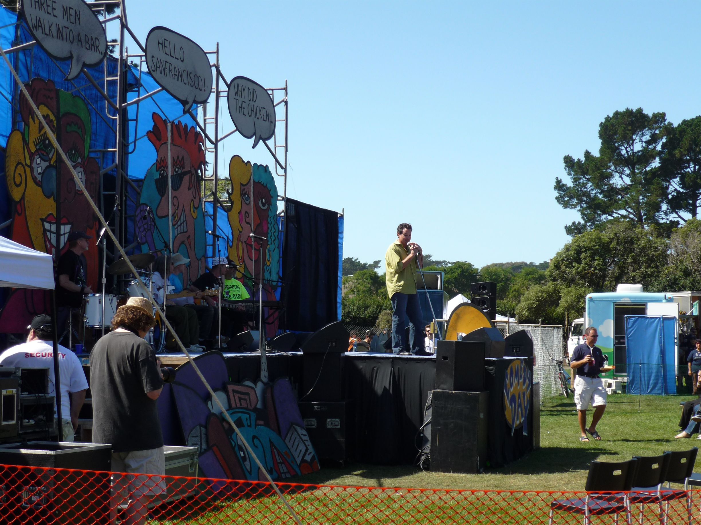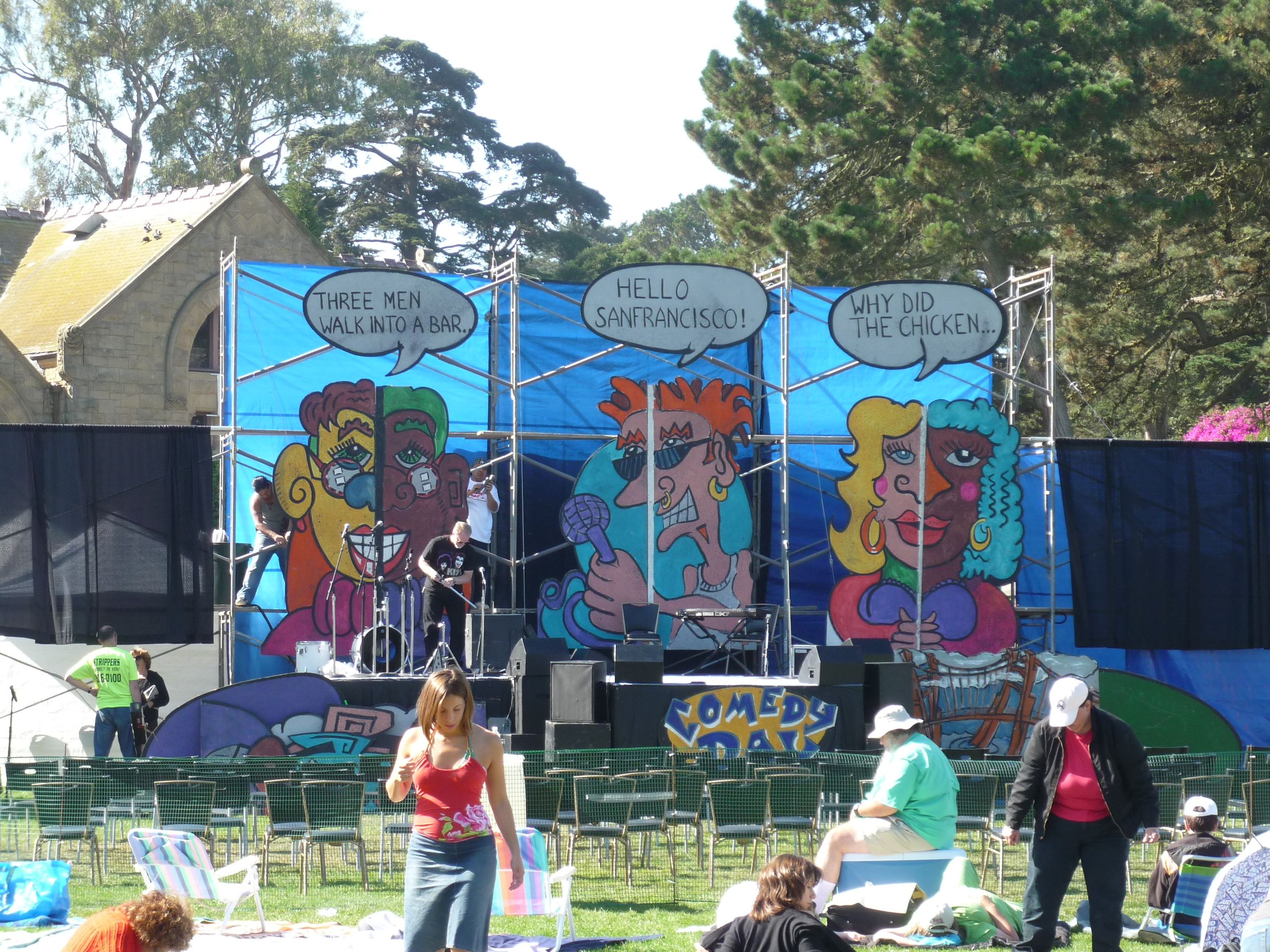 Direction donc le Golden Gate Park, gigantesque, qui me fait beaucoup penser au Central Park de New York en moins central. Il s’étend jusqu’au bord de mer et on peut y faire plein de choses. Je passe devant un attroupement avec des stands et une scène, il va y avoir une scène ouverte de comiques : plus de 30 comiques vont défiler pendant 5h.