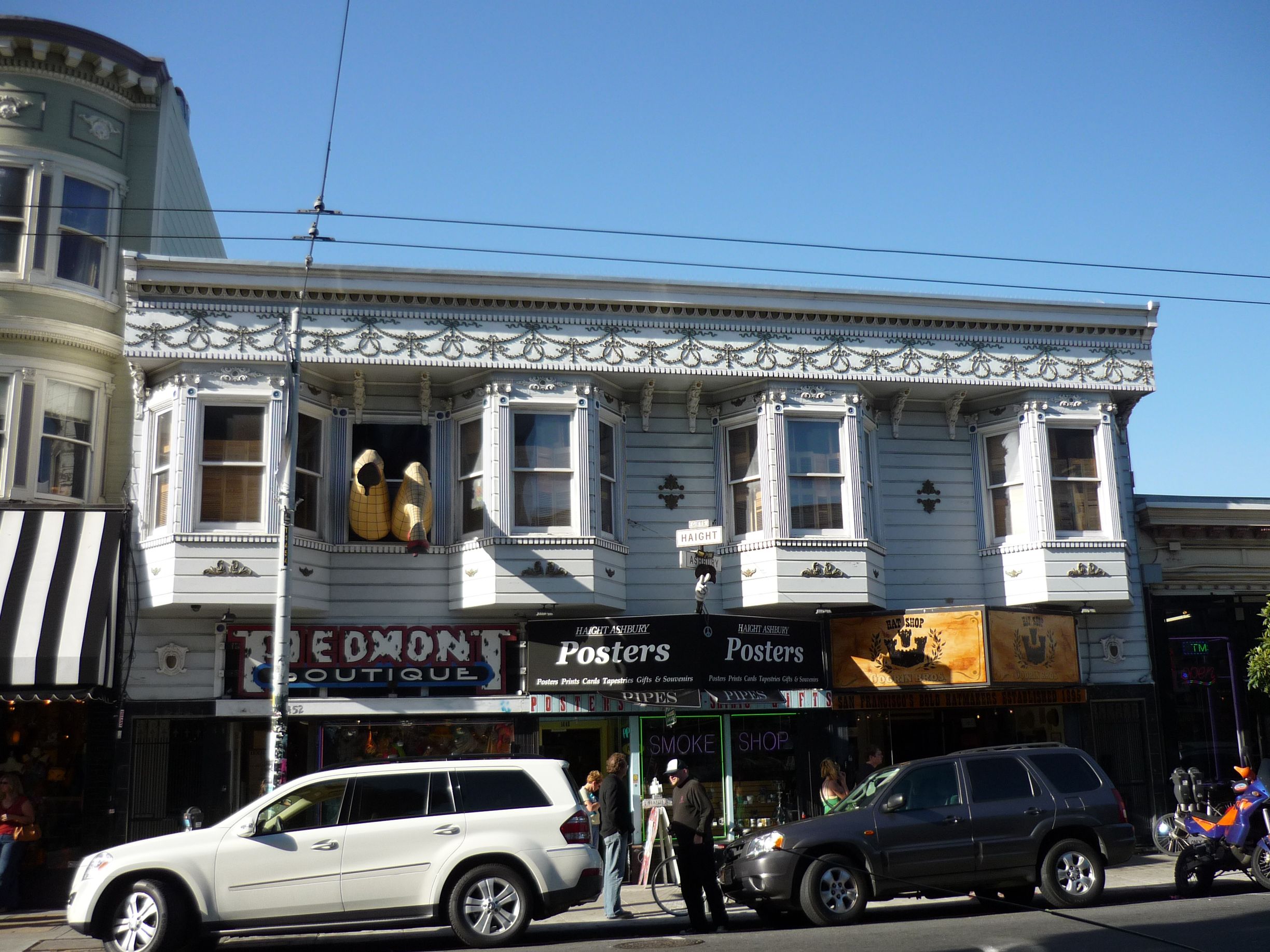 Je remonte ensuite vers Haight Street et prend cette rue en direction du Golden Gate Park. Plein de magasins étranges, aux devantures bigarrées, vendant des choses improbables tout droit sorties des années 1970. Pas mal vendent de fringues d’occasion, à visiter une fois qu’ils auront ouvert : il n’est pas encore 10h et la plupart des magasins sont fermés.