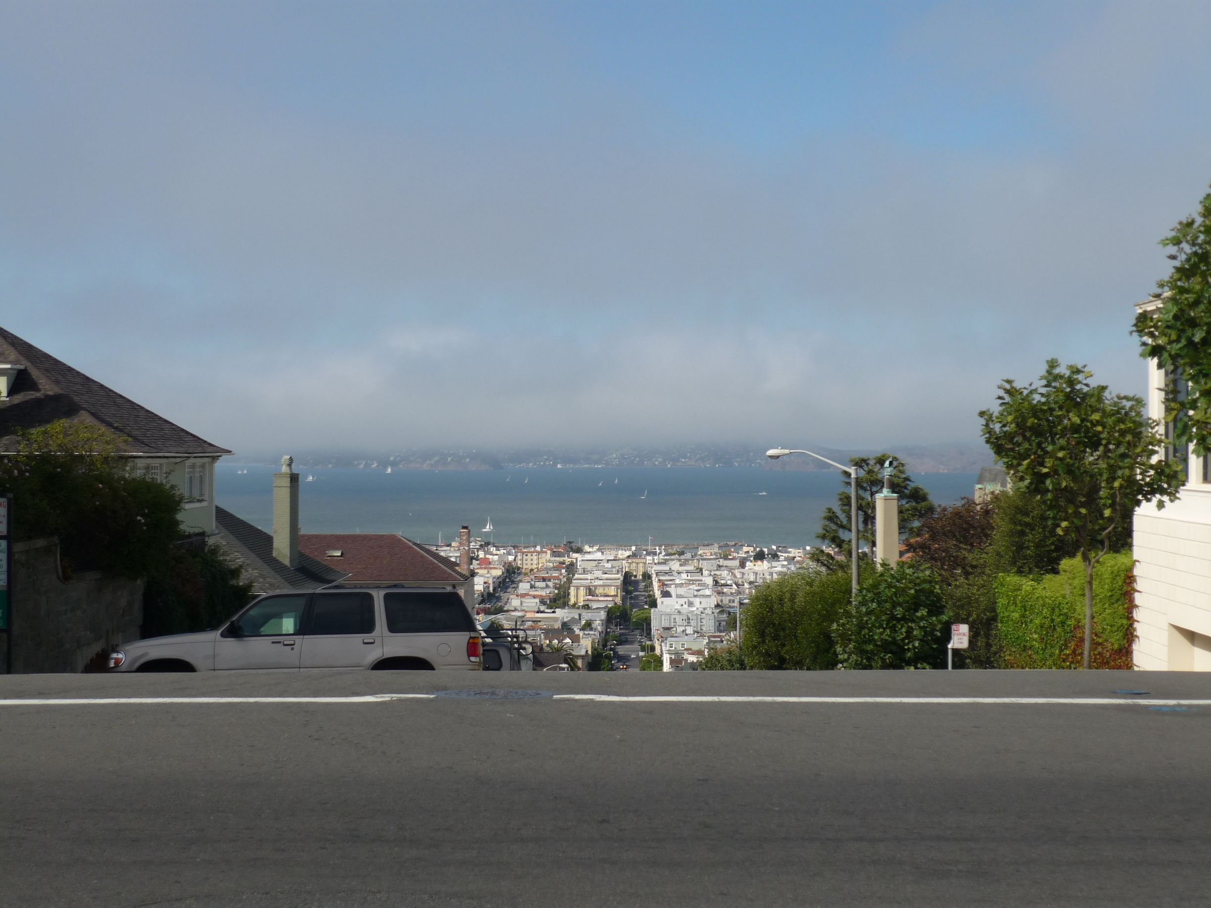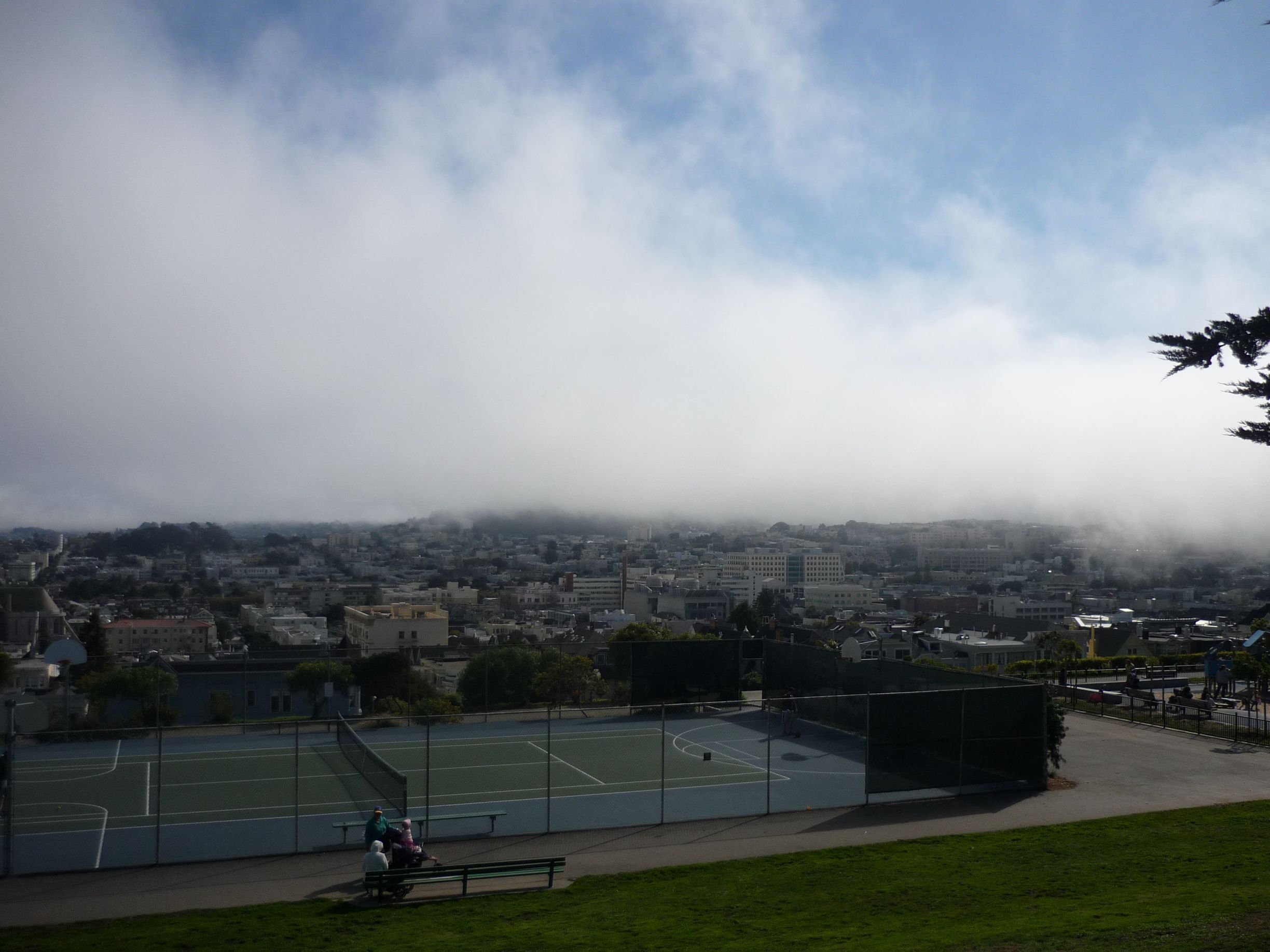 Alta Plaza est un joli parc, en hauteur, avec une belle vue sur la ville. Après une très agréable sieste, je rédige la première partie de ma journée. Du haut de ce parc, on voit bien à quel point c’est un brouillard, et non des nuages d’altitude, qui cache parfois le soleil. Le brouillard bouge à une vitesse ! Moi qui suis habitué à voir des nuages très haut dans le ciel, ça fait bizarre…