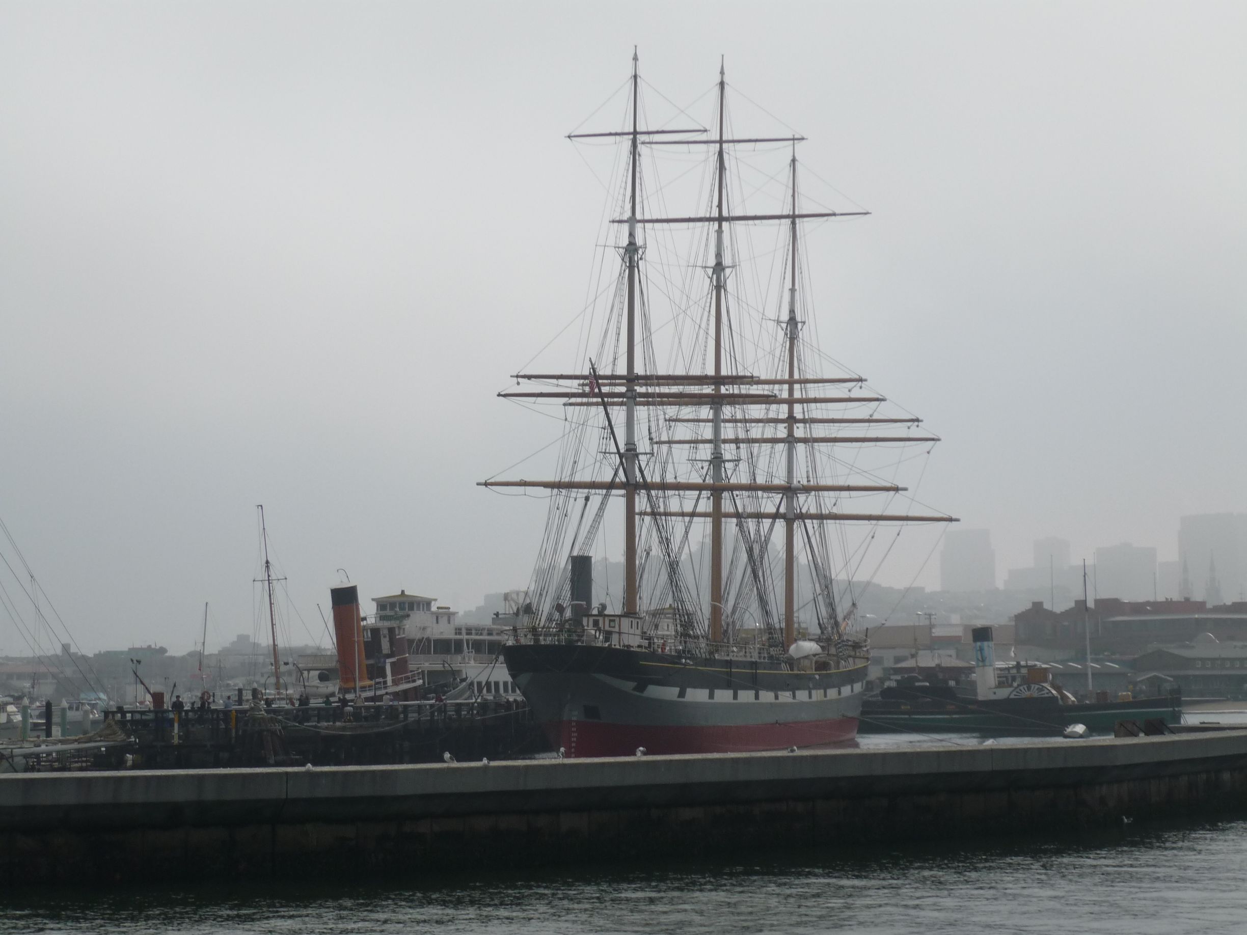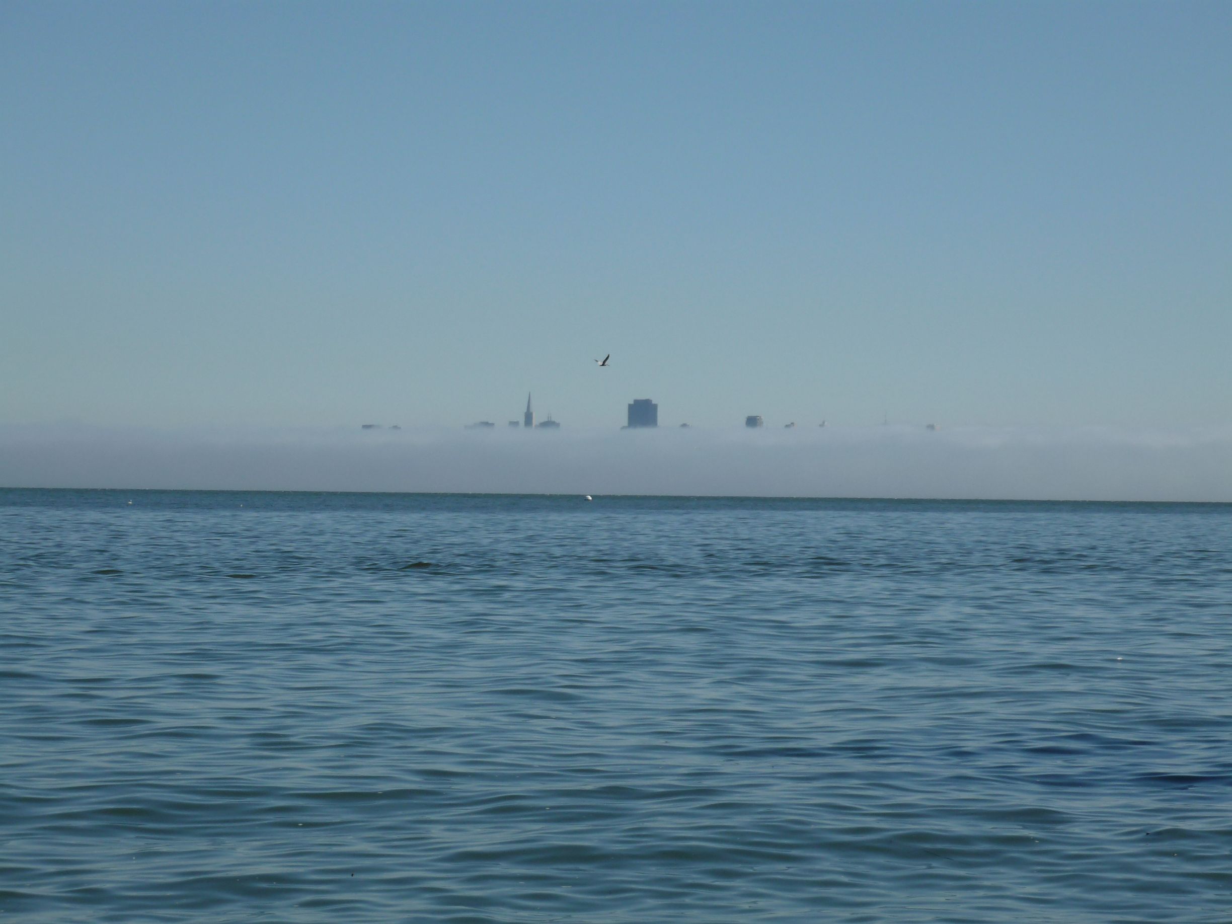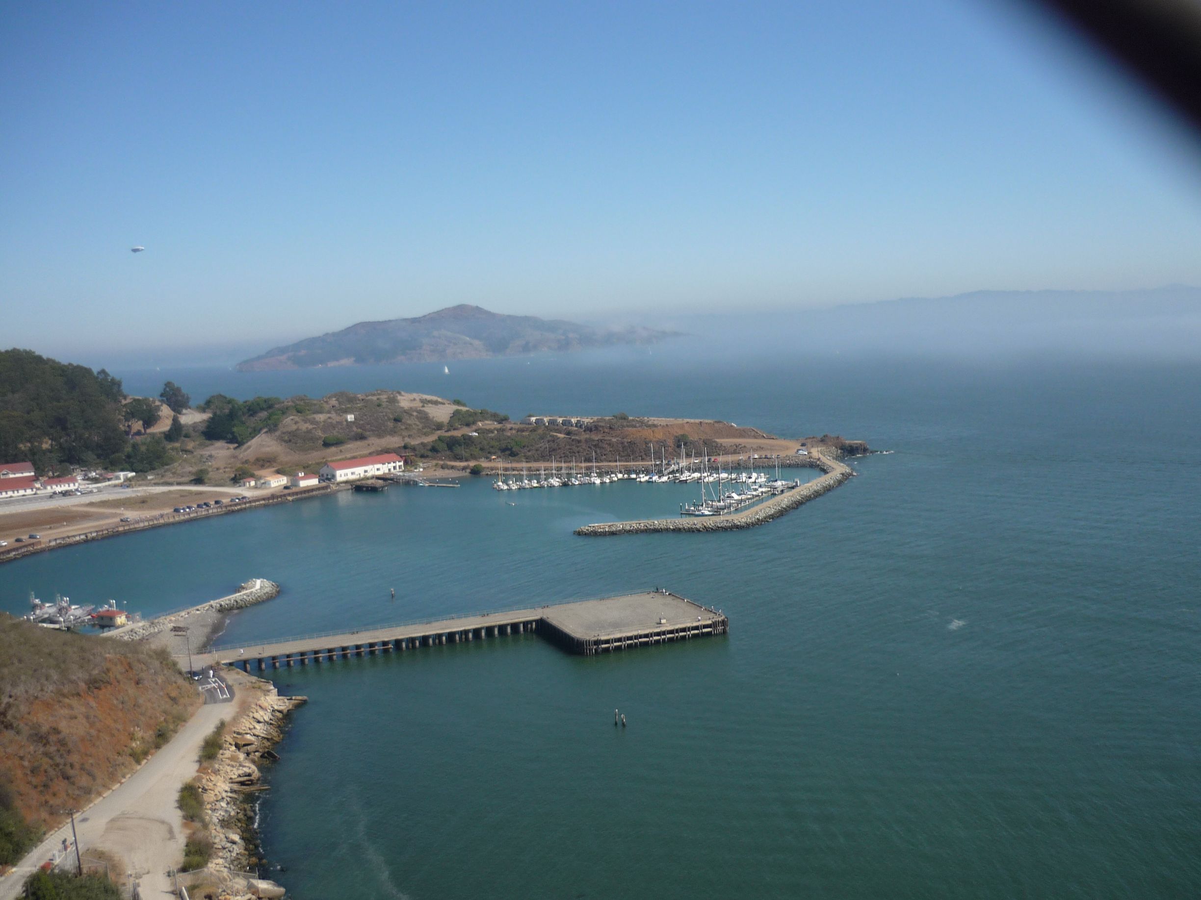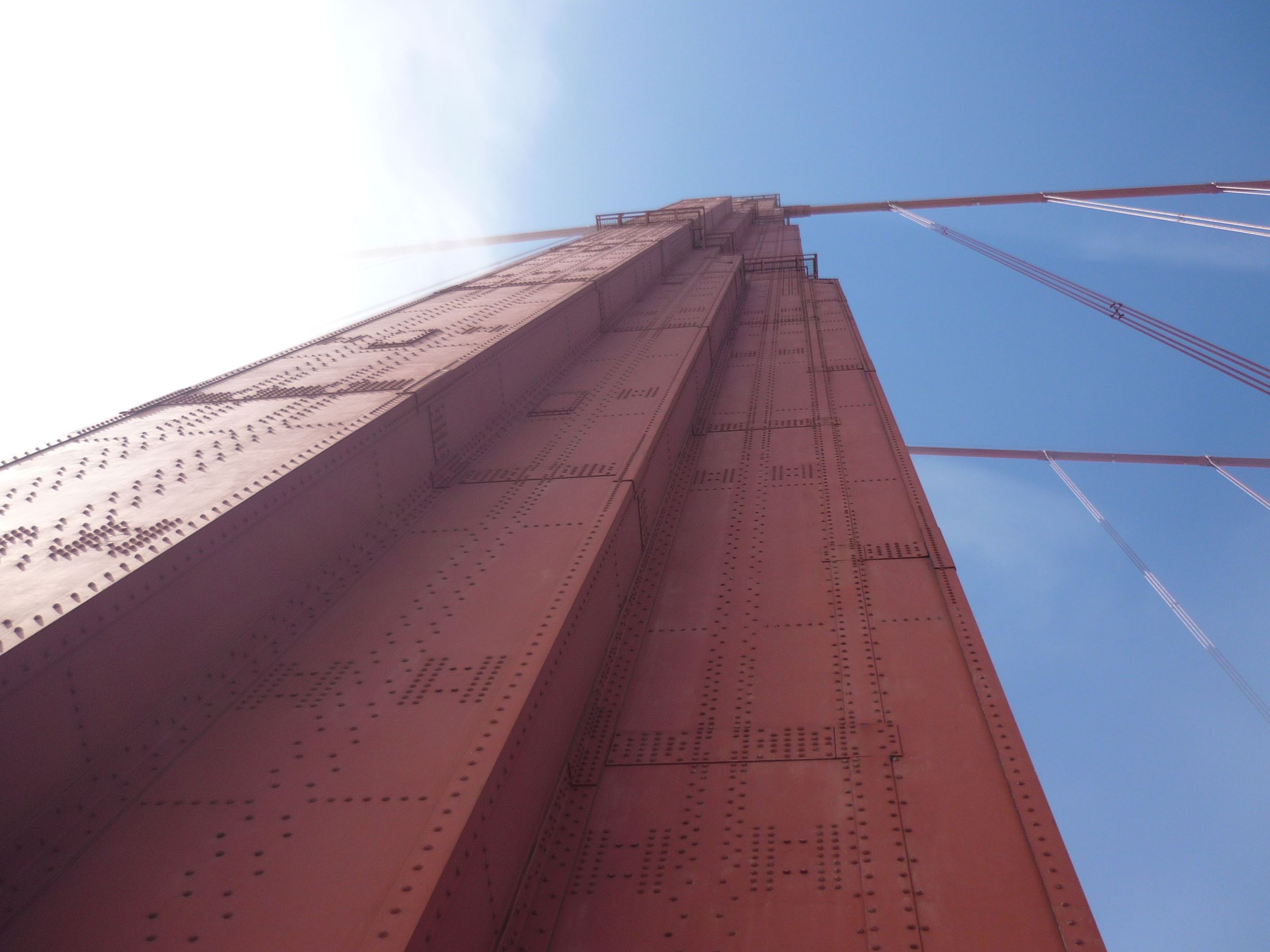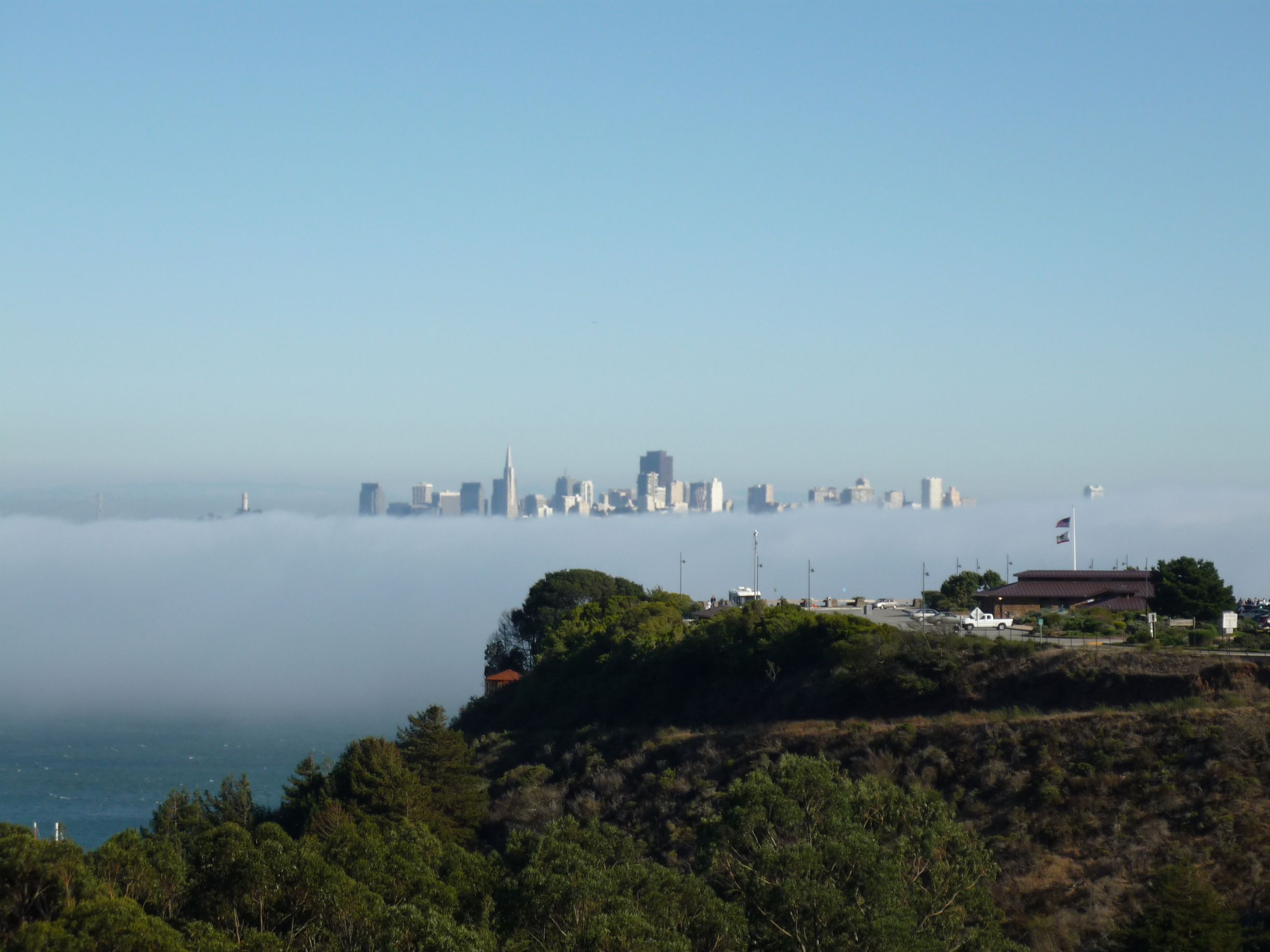 Direction le Golden Gate Bridge, sous le soleil de Californie. Malheureusement le pont est dans le brouillard, ce qui est normal apparemment ici mais un peu décevant pour les photos au pied du pont… Je monte donc afin de rouler sur le pont et, au fur et à mesure de mon avancée, le brouillard se lève, ce qui me permet de prendre quelques photos tout de même. Il y a pas mal de monde qui marche et c’est bien souvent plutôt du zig-zag que je suis obligé de faire, ne pouvant emprunter la voie pour voitures, mais c’est tout de même agréable. Ce n’est pas tous les jours que j’aurai l’occasion d’emprunter ce pont !