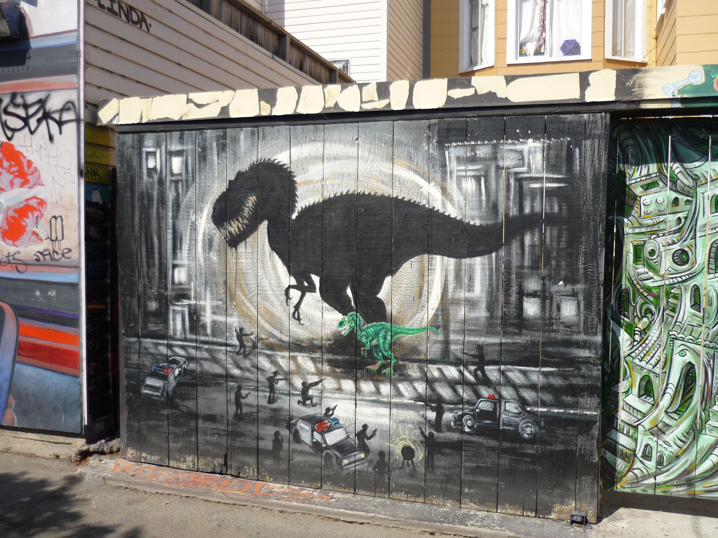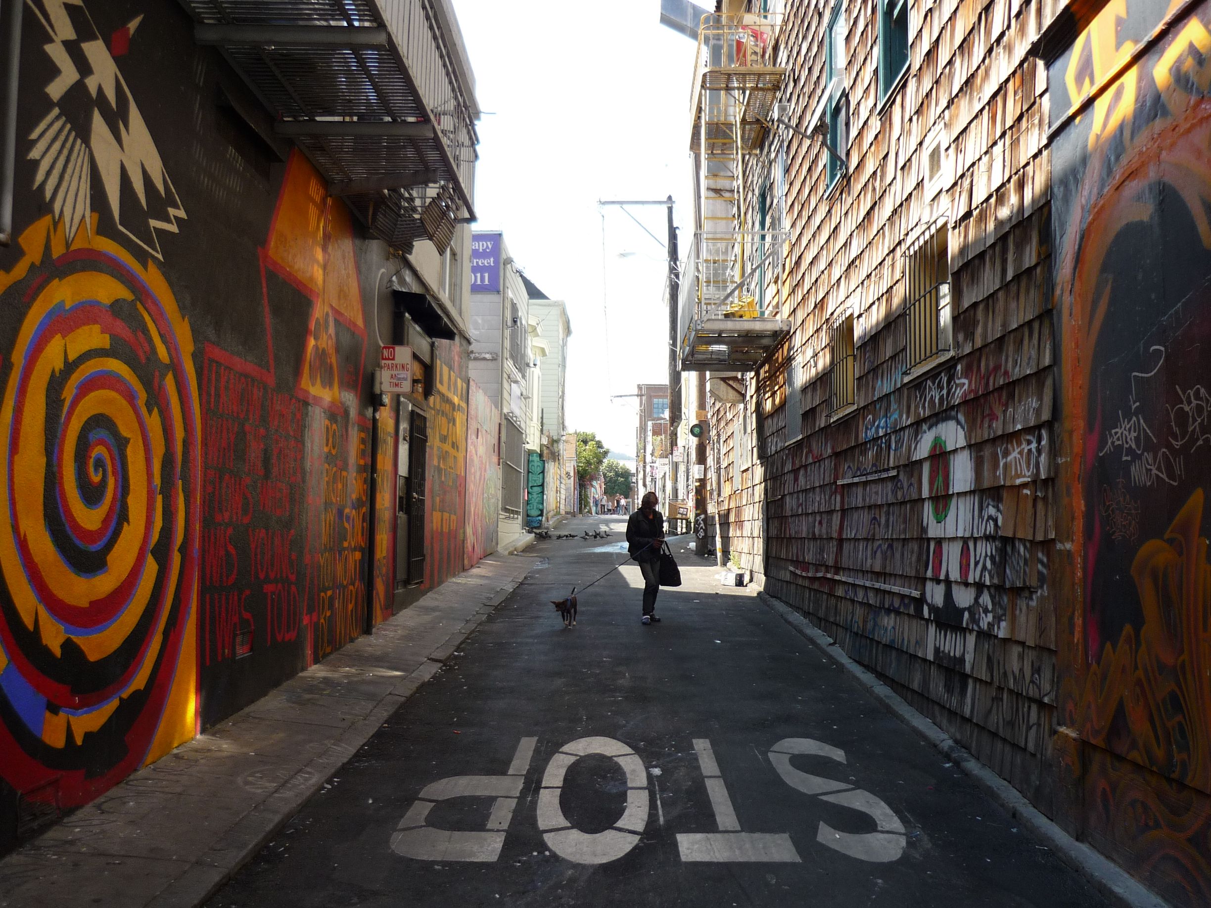 Je vais ensuite vers Clarion Alley, rue connue pour tous ses graffitis. Certains sont vraiment beaux, malgré (ou peut-être grâce à…) le mauvais état de l’endroit et l’odeur de vieille pisse qui y règne…