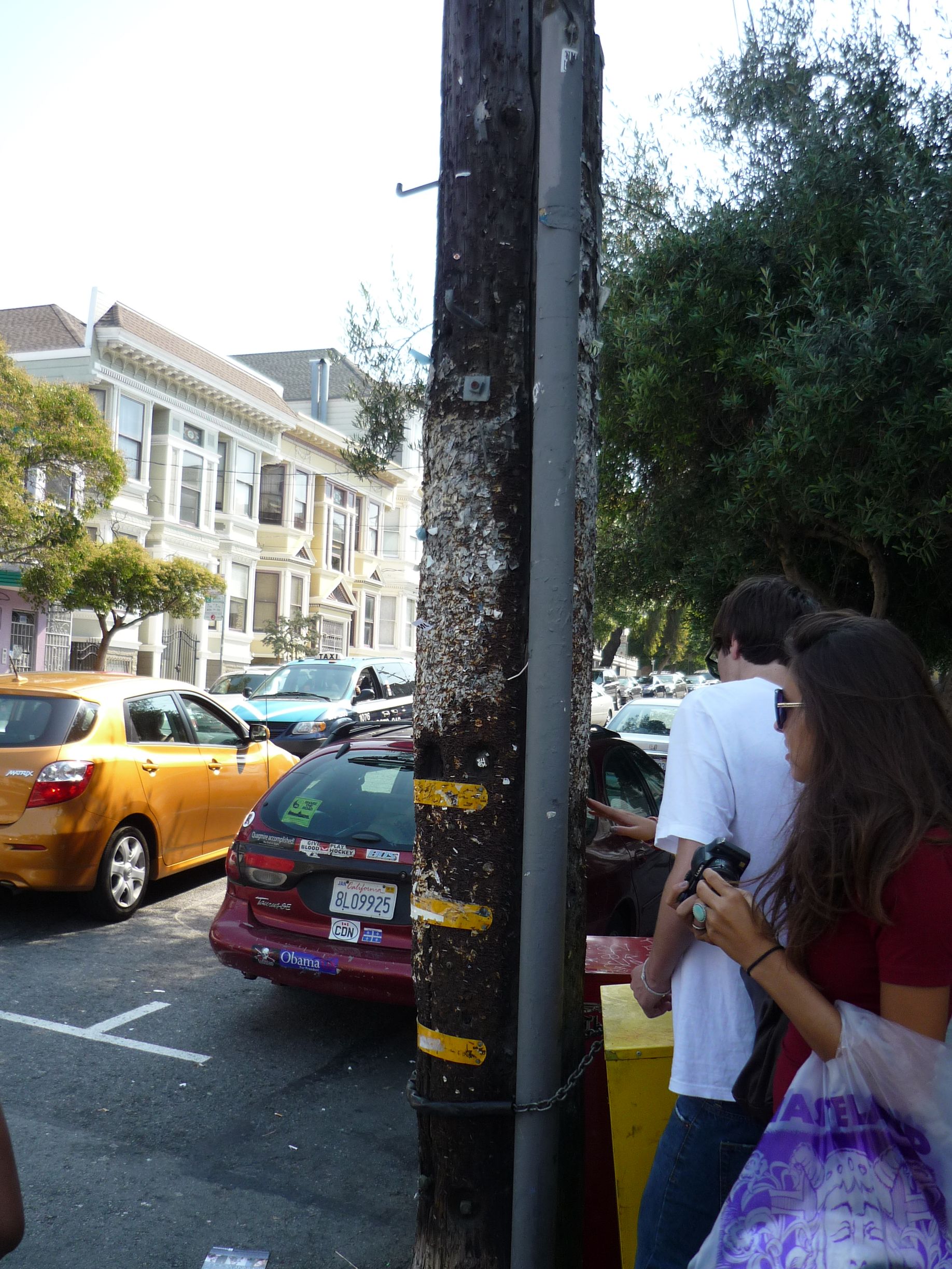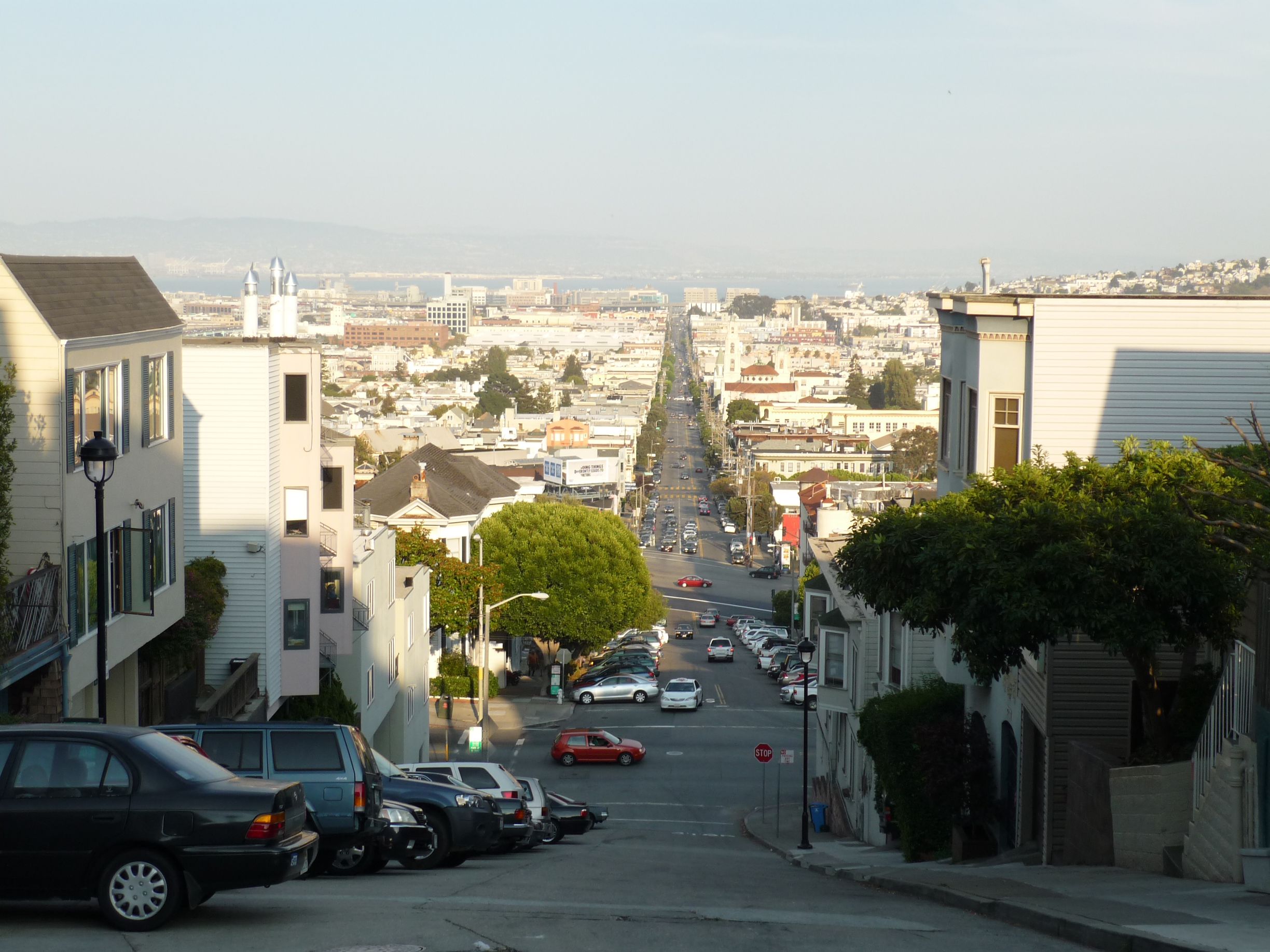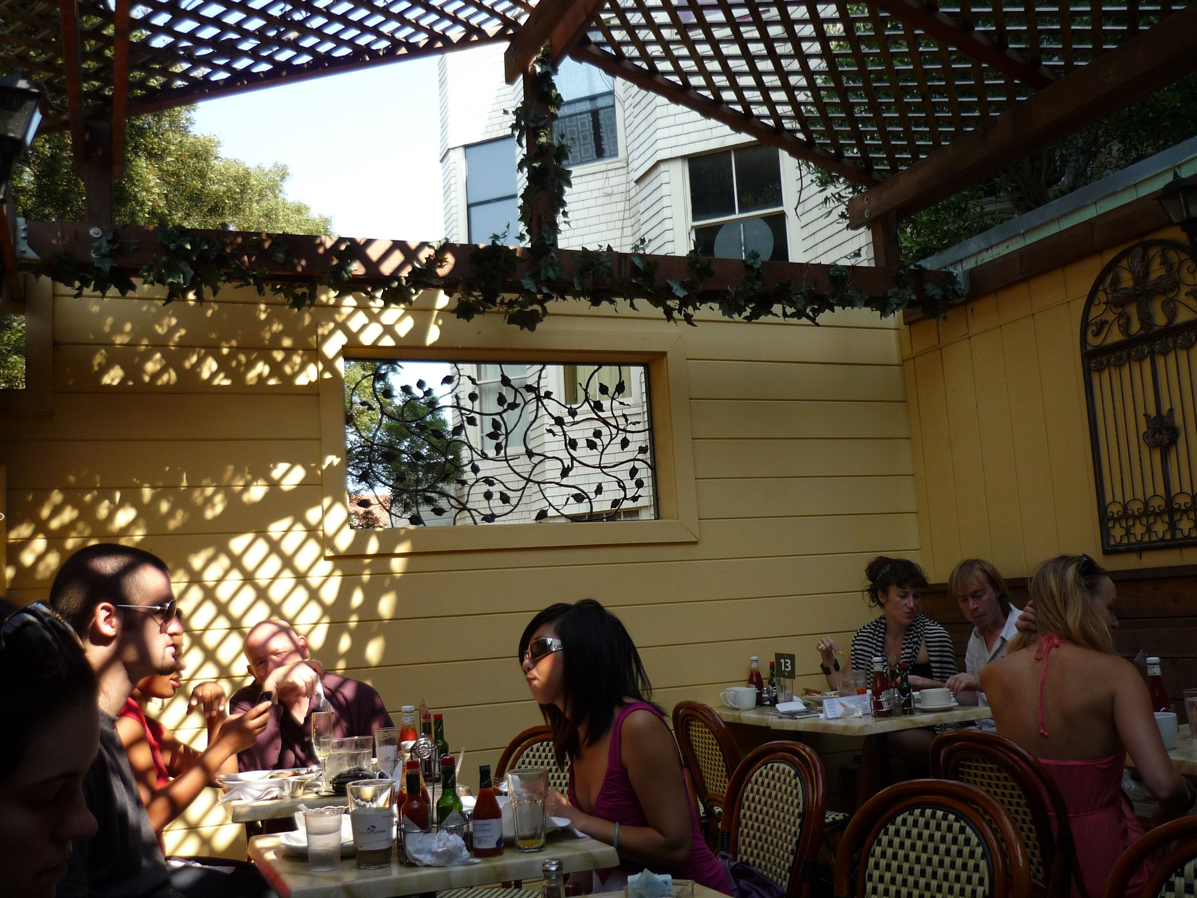 Je décide donc d’aller vers Haight Street, c’est de toute façon là bas que je désirais aller pour acheter mon fameux messenger bag… J’y trouve un café très sympa, avec une salle ouverte au fond qui permet d’éviter la chaleur qui règne dans la pièce principale… Je commande des pancakes et du café. L’attente est un peu longue, mais c’est vraiment bon. Trois gros pancakes, avec du sirop d’érable, c’est pas facile à terminer, et la fin est presque dure à avaler, mais je ne vais pas tout de suite remanger donc…