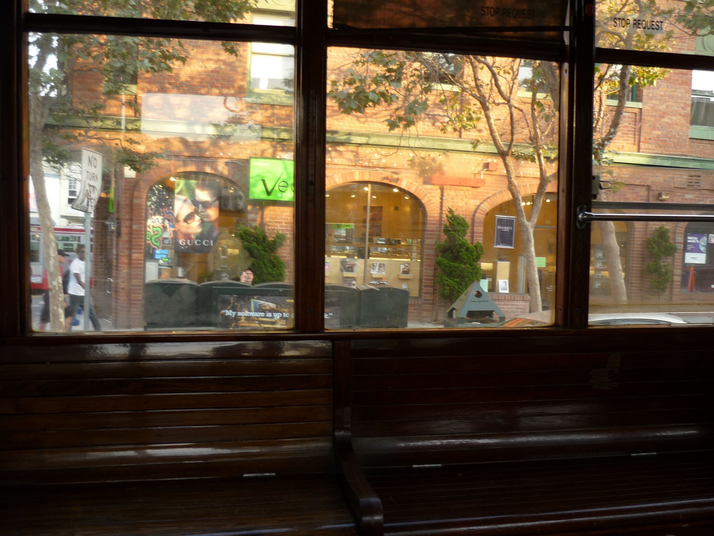 Retour à l’hôtel pour y déposer mon sac à dos et passer en mode sac bandoulière. Je repars vers Castro, quartier que je n’ai pas encore eu l’occasion de vraiment visiter. Dès le trajet en train F, je suis mis au parfum : des mecs en cuir, avec le pantalon ouvert au niveau des fesses et rien en dessous. C’est d’un goût…