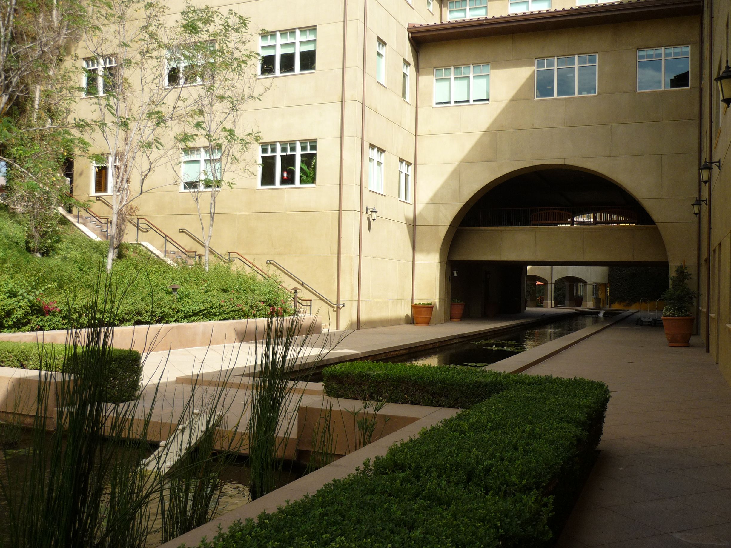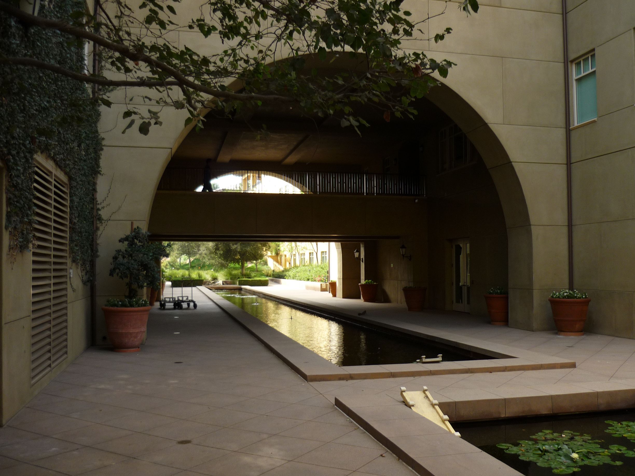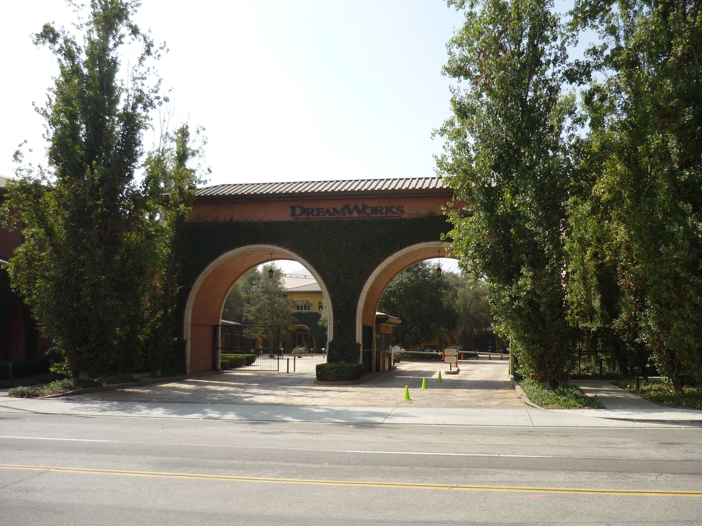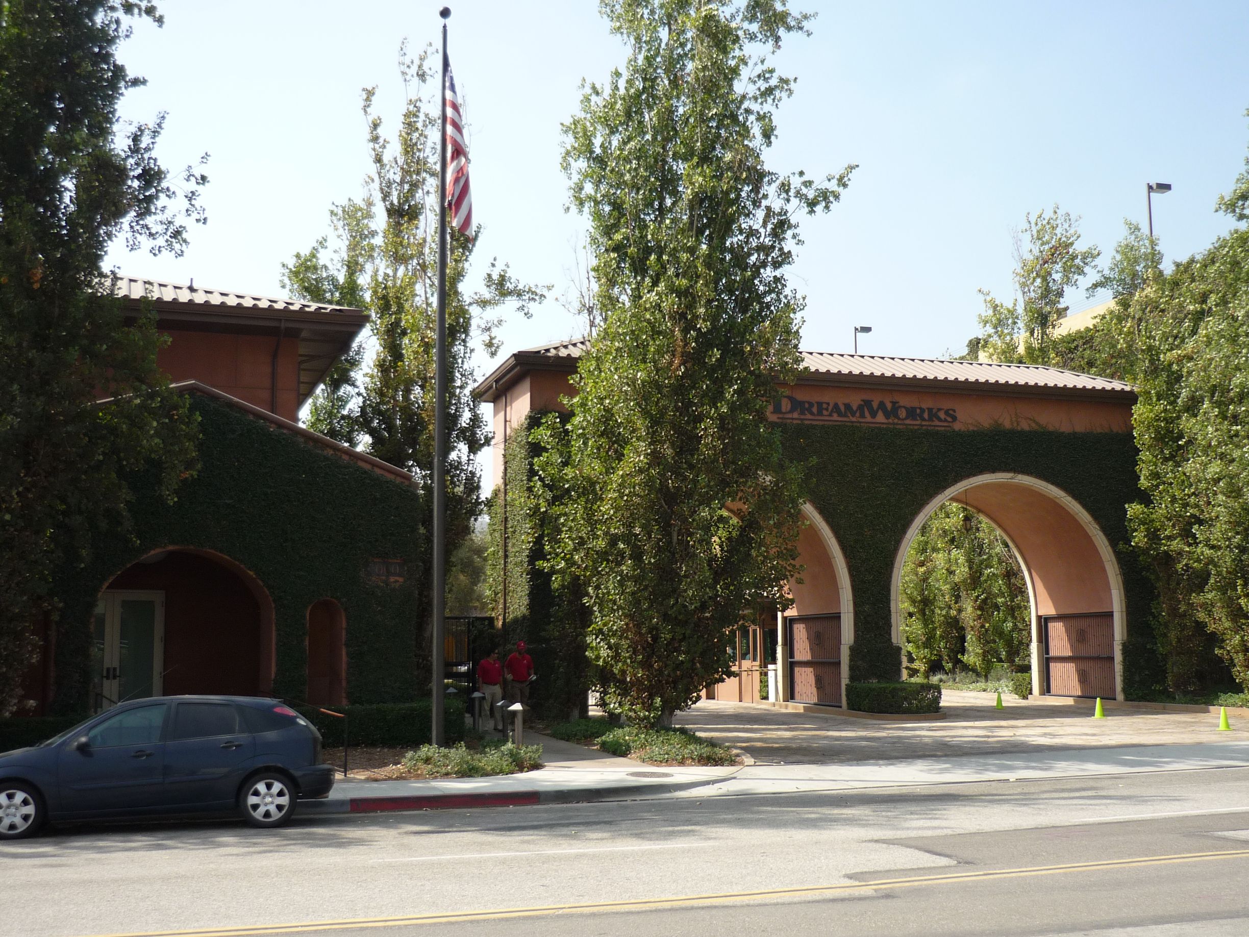Le premier bâtiment que j’y vois, immense, me semble être le bon mais, après en avoir fait le tour, je me rends compte que ce n’est pas ça et retourne sur mes pas. L’entrée de Dreamworks, une double arche, avec de la vigne sur les murs, des gardes à l’entrée et Dreamworks marqué en lettres capitales sur le fronton, est en fait juste à l’intersection, là où je suis arrivé…