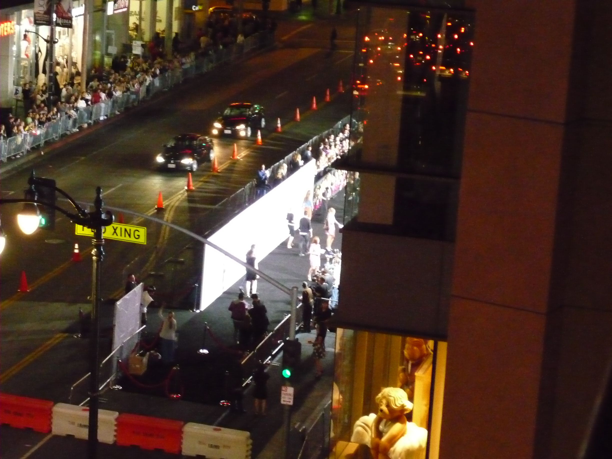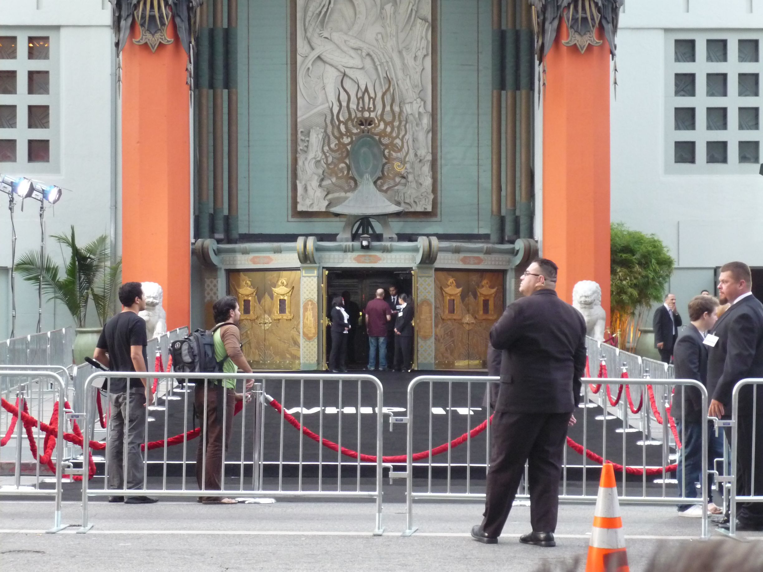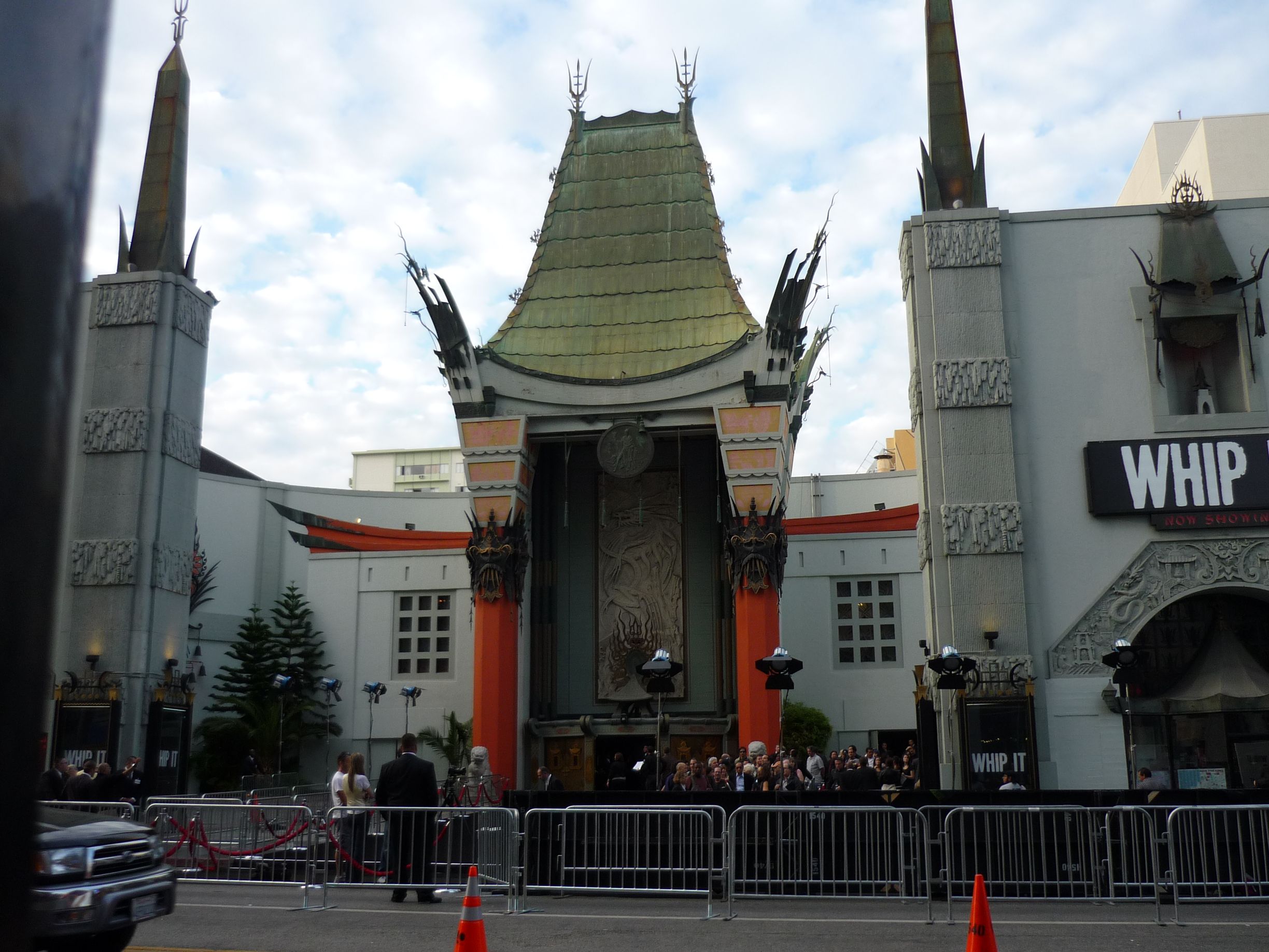 J’en profite pour acheter une carte postale pour Caro et l’envoyer de Hollywood Boulevard. En continuant à remonter le boulevard, je vois, devant le Chinese Theater , des lumières, des bannières temporaires, des gardes du corps et un mur pour prendre des photos. Cela sent l’arrivée de stars et je me dis qu’après tout, je serai pas à Hollywood tous les jours, donc j’attends devant le cinéma, de l’autre côté de la rue. Le film projeté est Whip It. Ils font venir progressivement des gens aux premières loges : juste après le mur des photos, au niveau du tapis posé devant l’entrée.