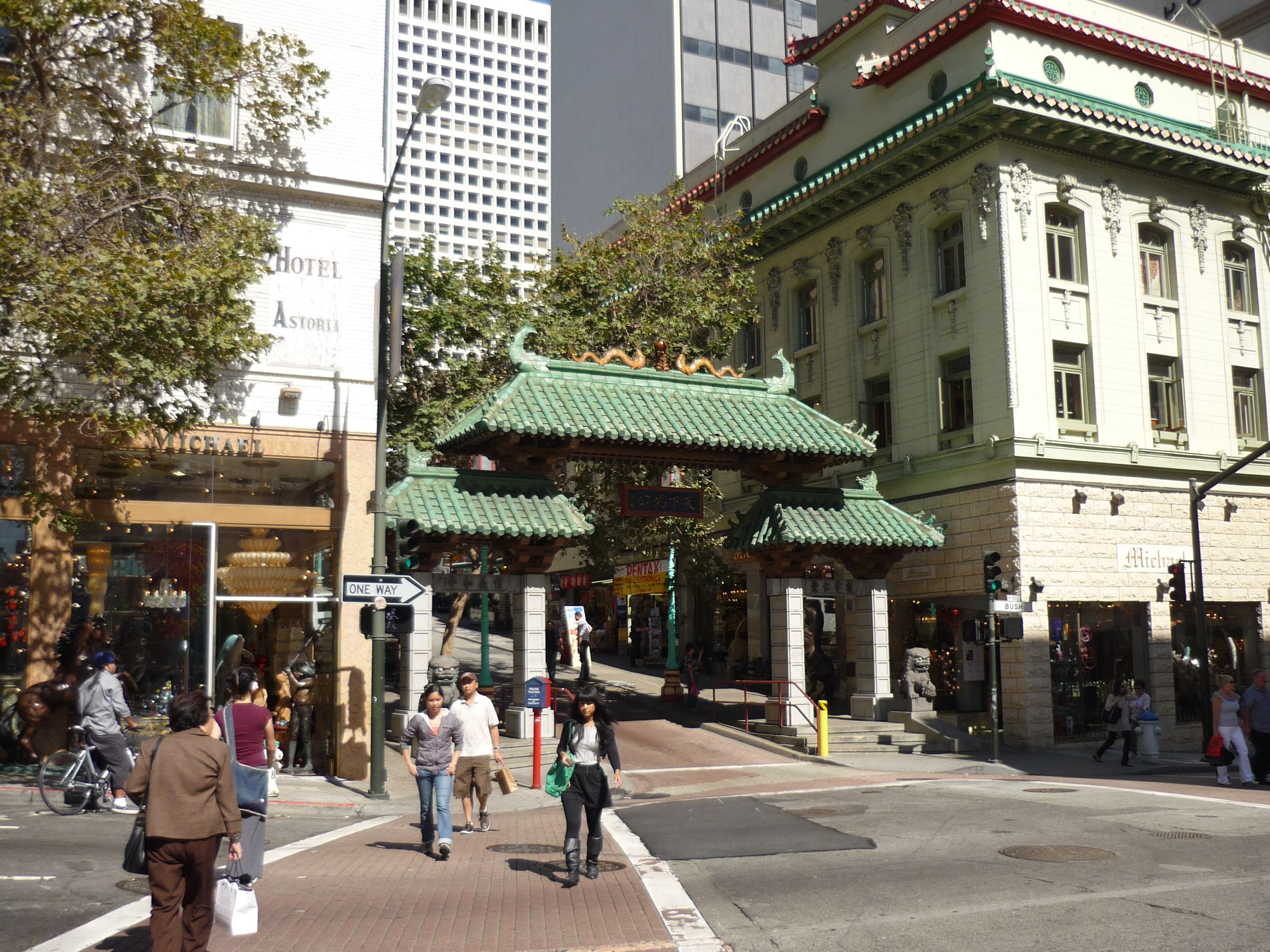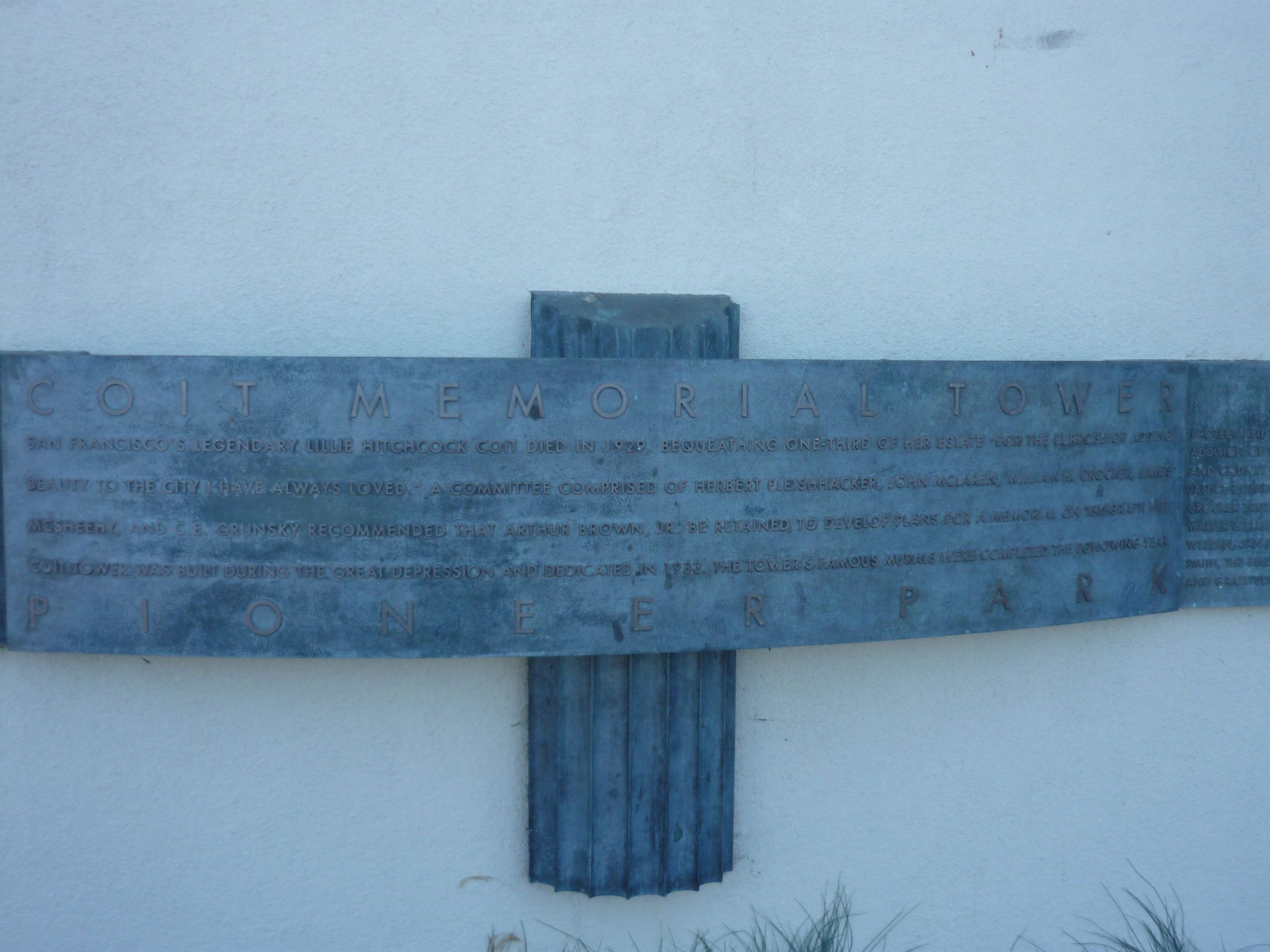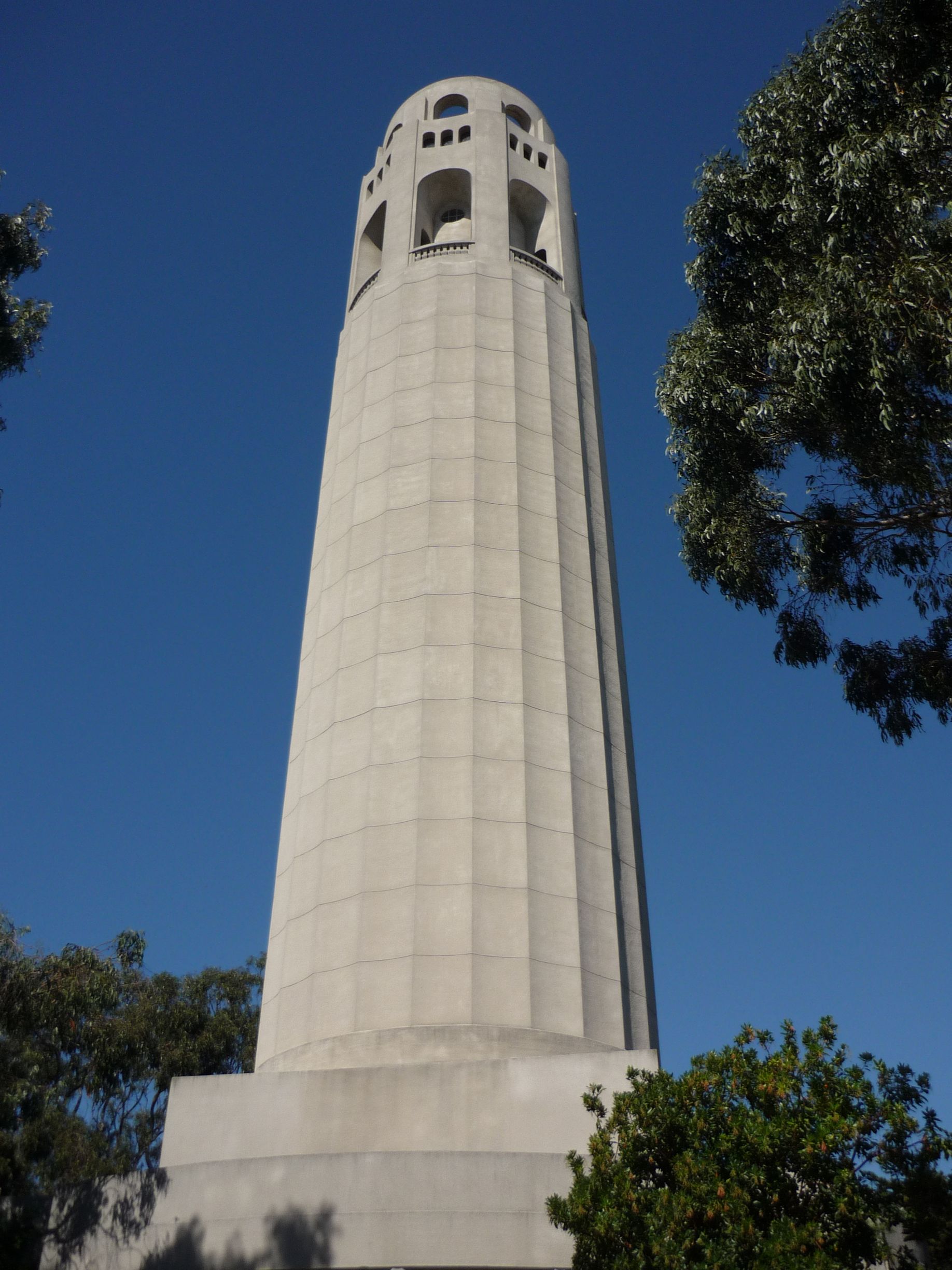 Je retourne encore une fois poser tout cela à l’hôtel puis direction la porte de Chinatown, que je n’ai pas encore vue… J’y vais à pied, ce n’est pas très loin de l’hôtel. La porte est assez jolie mais plutôt basique, celle de Londres est bien plus impressionnante. Je continue à remonter la rue et me dirige vers la Coit Tower. Quel nom étrange. Il vient du nom de la personne qui a payé pour cette tour en l’honneur des pompiers. Le temps est superbe et la balade jusqu’à cette tour très agréable. La montée est assez impressionnante mais je commence à être habitué… La tour en elle-même n’a rien de spécial, mais l’endroit où elle est située est génial. On a une superbe vue sur le Bay Bridge et le reste de la côte.