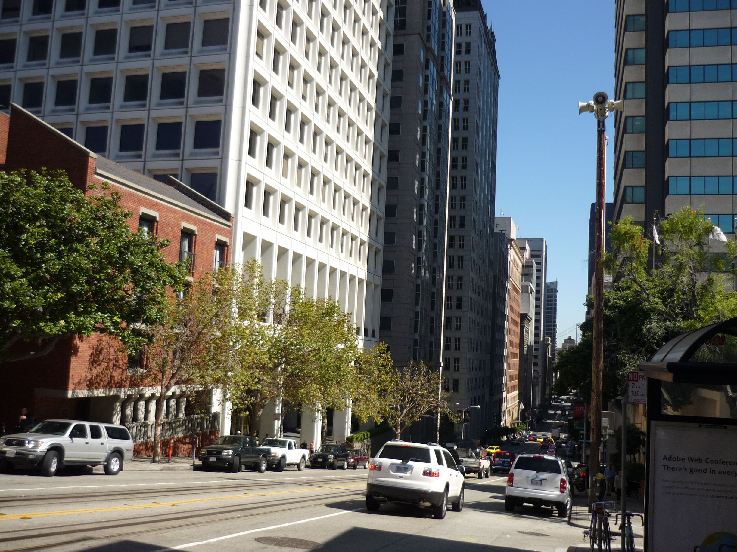 Je rentre à l’hôtel déposer mes affaires et vais m’acheter à manger. Je me rends compte, en allant vers Powell, que je n’ai toujours pas testé le cable car ! Heureusement pour moi, il y a beaucoup moins de monde le soir et je monte assez rapidement dans un tram au niveau du turnaround. C’est assez marrant d’être assis face au trottoir et de voir les gens vaquer à leurs occupations sans du tout faire attention au tram qui passe. Sinon ce tram n’a rien de spécial, hormis le conducteur debout au milieu, entre les deux rangées de sièges, qui active des grands leviers pour faire avancer ou stopper la machine.