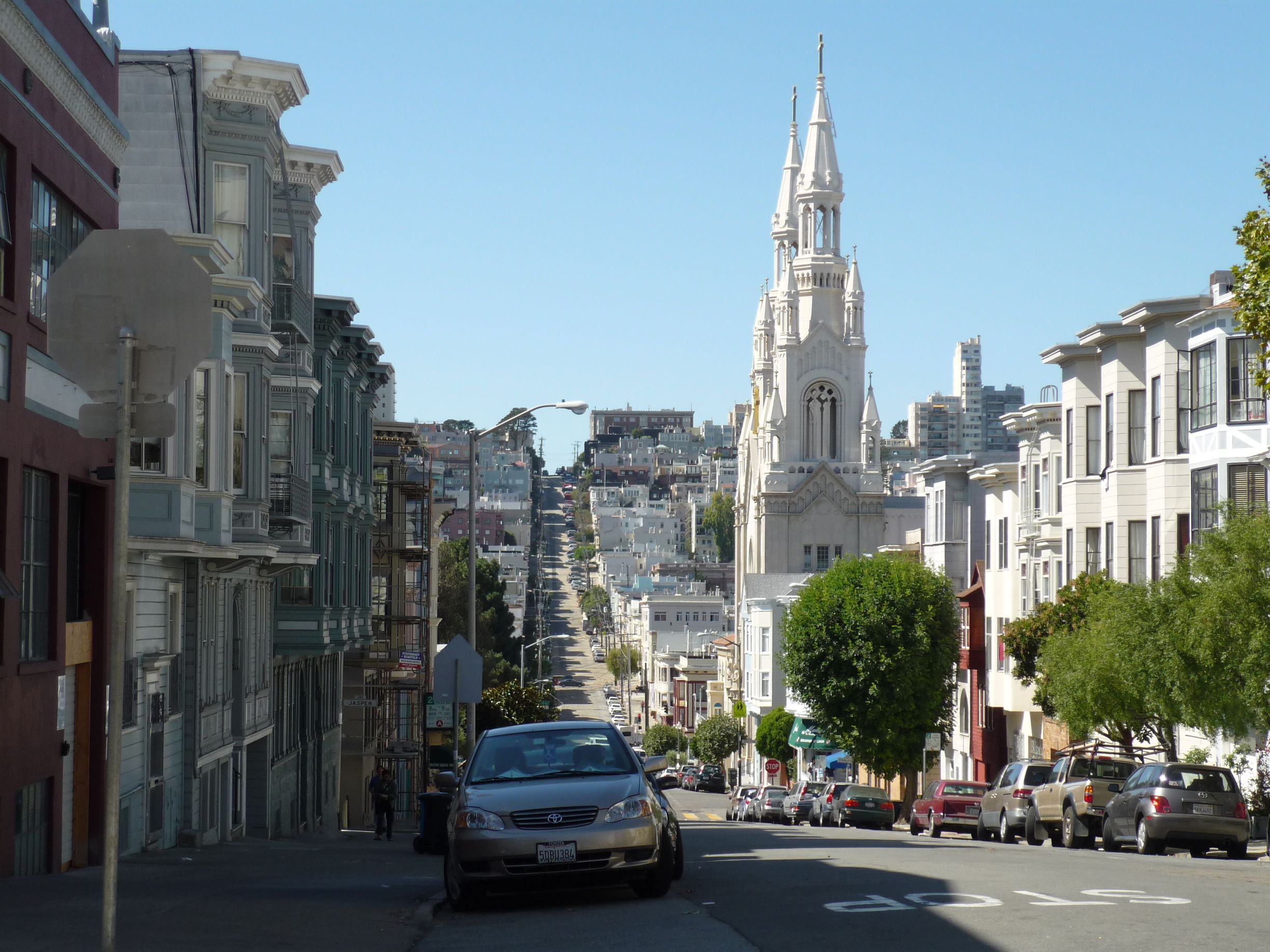 Je redescends par les escaliers de Filbert Street et là le spectacle est vraiment magnifique. Je longe une série de jolies maisons en bois, avec des petits jardins « en escalier » pour s’accommoder de la pente. J’imagine que le loyer doit être assez fou ici, même si faire ses courses doit être assez compliqué et ennuyeux…