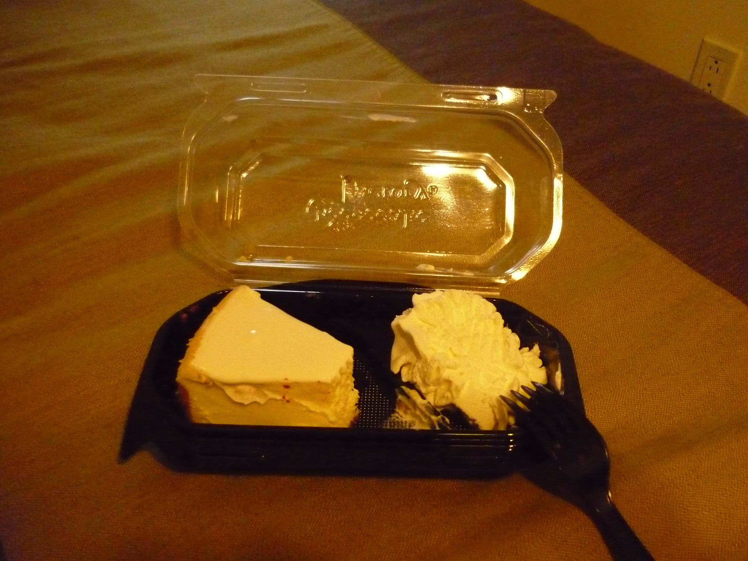 Branché sur HBO, je tombe sur un film comique : Harold et Kuma s’échappent de Guantanamo Bay. C’est assez détendant… Après avoir mangé mon Subway, je m’attaque au cheesecake servi dans un emballage plastique avec de la crème chantilly. C’est excellent, certainement le meilleur cheesecake que j’ai mangé. Il coûte 8$ la part, mais les vaut amplement ! Après cela, préparation des sacs, je repars demain pour la France :(